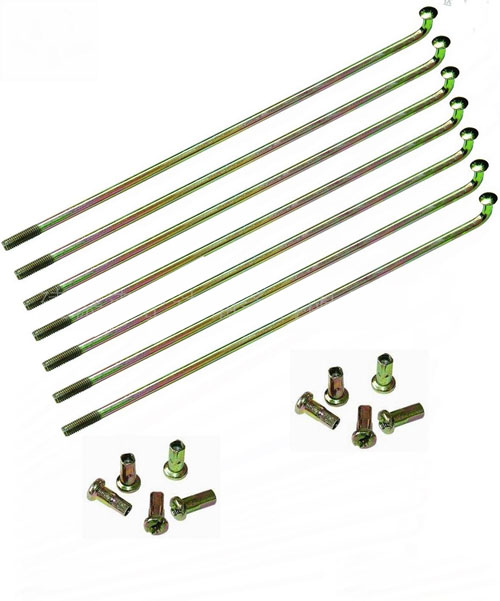 摩托車輻條,尺寸:120-230(mm),型號:C90。主要規格有 8G、9G、10G、11G、12G、13G、14G、15G長度為45mm-308mm,條母有普通型、銑槽、加長型銑槽及加長型銅條母。主要用于連接摩托車外輪和輪轂。摩托車輻條一端有個90度彎角穿過車抽盤的小孔,另一端有輻條帽穿過輪轂的輻條孔。通過調節輻條的松緊來調整摩托車車輪轉動是不是在同一個平面上。這樣,摩托車行駛會更穩。
