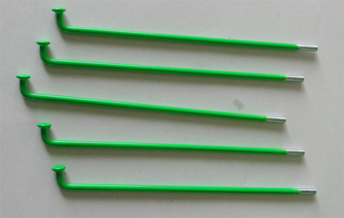 摩托車輻條,尺寸:120-230(mm),型號:C90。主要規格有 8G、9G、10G、11G、12G、13G、14G、15G長度為45mm-308mm,條母有普通型、銑槽、加長型銑槽及加長型銅條母。主要用于連接摩托車外輪和輪轂。摩托車輻條一端有個90度彎角穿過車抽盤的小孔,另一端有輻條帽穿過輪轂的輻條孔。通過調節輻條的松緊來調整摩托車車輪轉動是不是在同一個平面上。這樣,摩托車行駛會更穩。